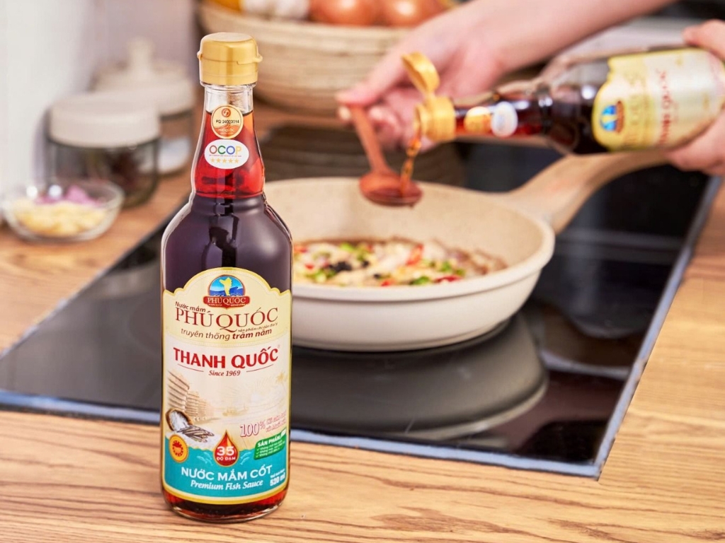 Nước mắm chỉ dẫn địa lý Phú Quốc – Thanh Quốc 43N là sản phẩm cao cấp được Liên minh Châu Âu bảo hộ chỉ dẫn địa lý, khẳng định giá trị đặc sản truyền thống.